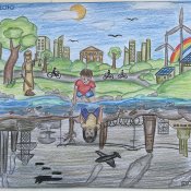 Magnus Dostal erreichte mit seiner Collage einen hervorragenden 4. Platz und durfte sich über ein Preisgeld freuen. Saniye Nur Güvercin wurde für ihre Malerei mit einem Ehrenpreis ausgezeichnet. Ein Beweis dafür, dass nachhaltige Ideen nicht nur sinnvoll, sondern auch ausgesprochen sehenswert sein können.