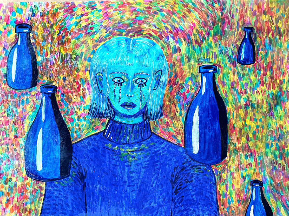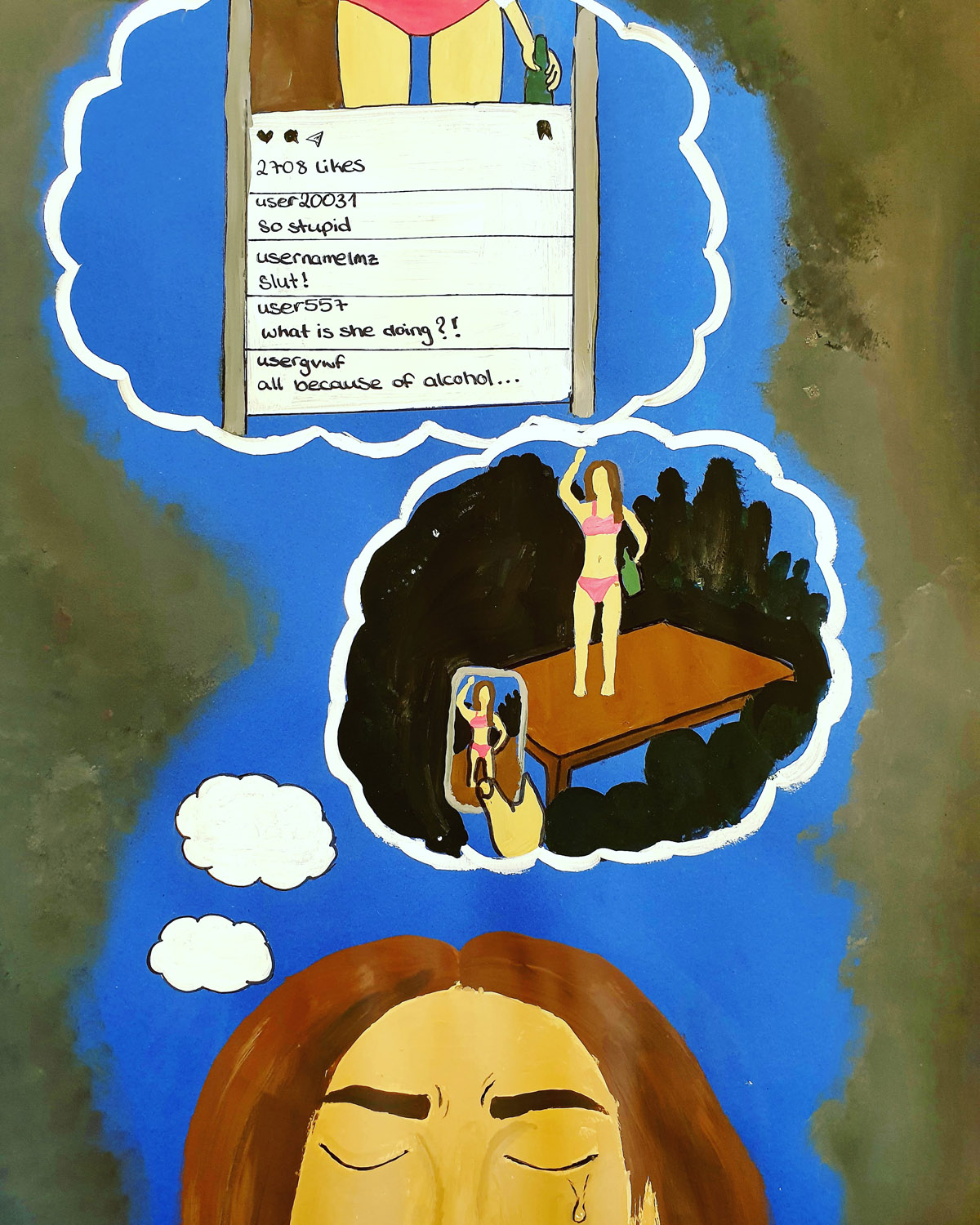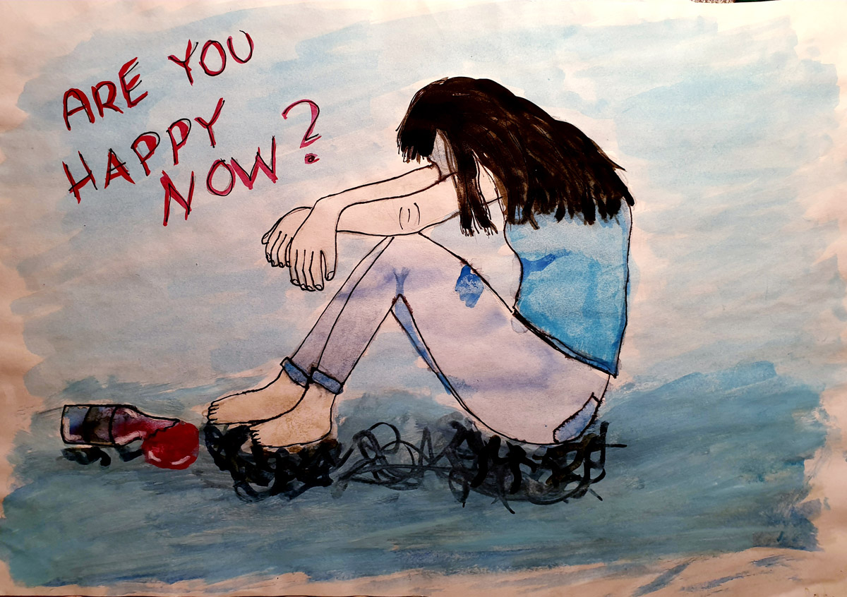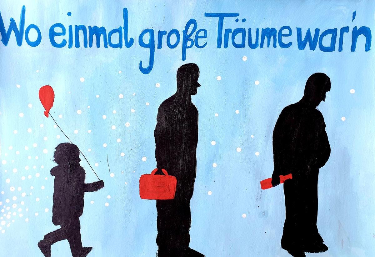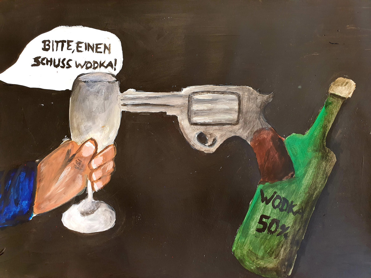 Die DAK-Gesundheit rief deshalb Künstlerinnen und Künstlerin zu einer Anti-Alkohol-Kampagne auf, an der sich mehrere Kunstkurse unserer Schule engagiert und kreativ beteiligten.