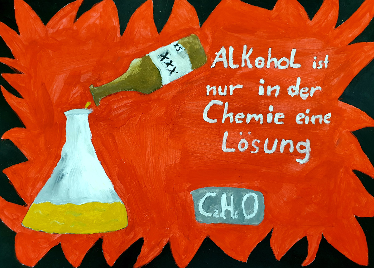 Hierbei gestalteten die Schülerinnen und Schüler ideenreiche Plakate, die auf künstlerische Art und Weise der eigenen Generation die Konsequenzen von Alkoholmissbrauch vor Augen führen und zum Nachdenken anregen.