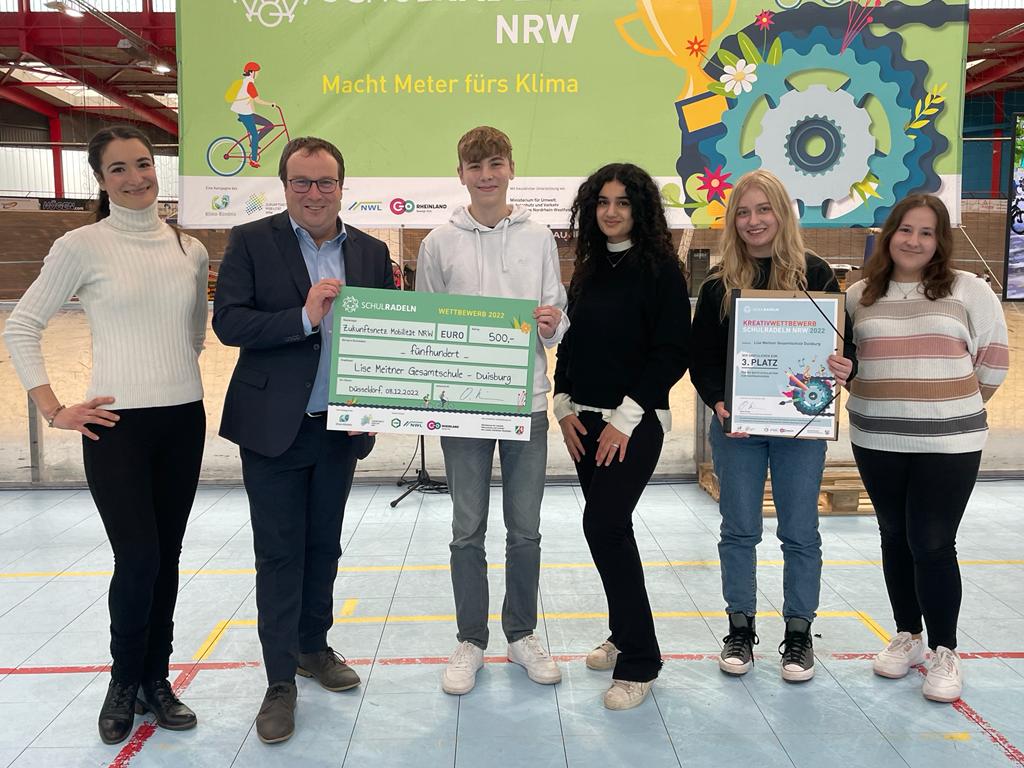 Bei der Preisverleihung haben wir uns natürlich sehr über unseren dritten Platz gefreut, der uns von Oliver Krischer, unserem Minister für Umwelt, Naturschutz und Verkehr des Landes Nordrhein-Westfalen, überreicht worden ist.