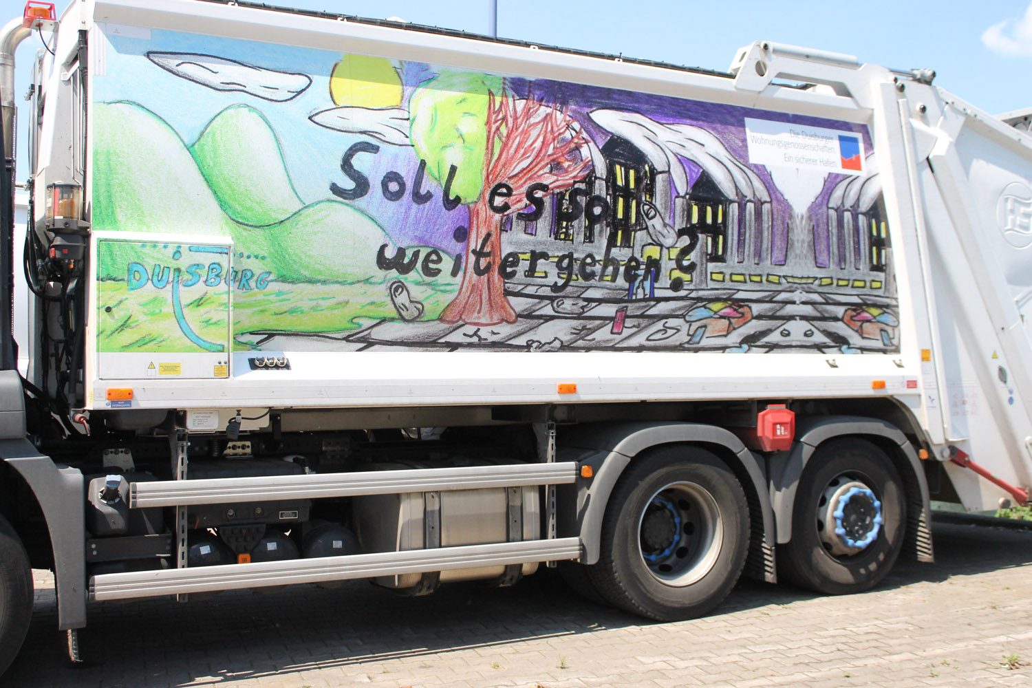 Neben einem Preisgeld, der weitere künstlerische Schulprojekte ermöglicht, werden in Zukunft die Siegerbilder auf den Müllwagen der Wirtschaftsbetriebe durch die Stadt Duisburg fahren. Wir sind stolz auf unsere fahrenden Kunstwerke, die für unsere Heimatstadt Duisburg und mehr Sauberkeit werben.